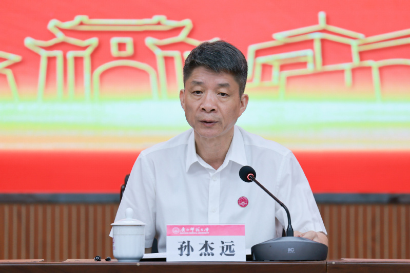 孙杰远对全体教师提出殷切希望:要铸魂育梦,做信念如磐的领航之师;修德立范,做品行端方的垂范之师;启慧润德,做学识渊博的明智之师;笃行创新,做开拓奋进的进取之师;仁爱育人,做关爱入微的暖心之师;博采弘道,做胸怀天下的致远之师。他号召大家大力弘扬教育家精神,牢记为党育人、为国育才的初心使命,以更加昂扬的斗志、更加扎实的作风、更加优异的成绩,加快建设国内一流大学,为全面建设社会主义现代化国家、实现中华民族伟大复兴的中国梦作出广西师范大学新的更大贡献!