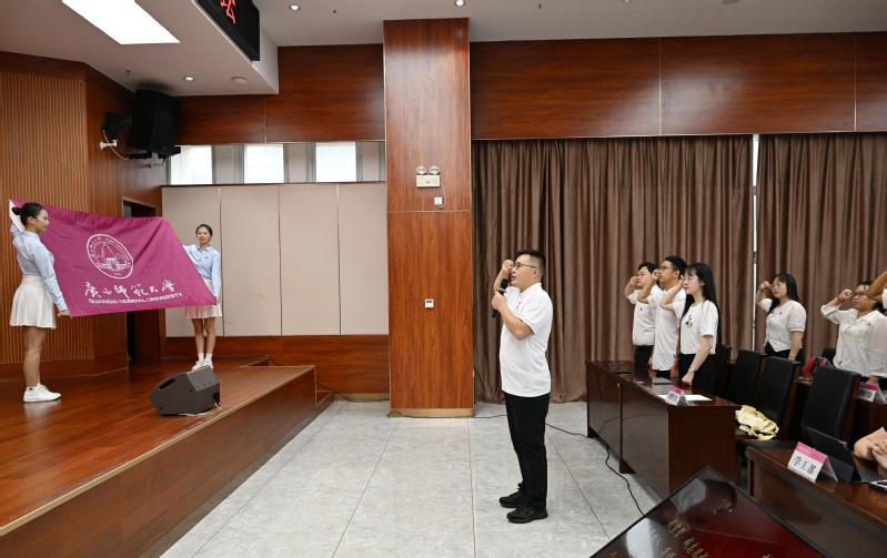 大会在庄严的国歌声中拉开帷幕。“我志愿成为一名人民教师……”新进教职工入职仪式上,新进教职工们郑重佩戴校徽,在政治与公共管理学院于恩洋老师的带领下庄严宣誓。计算机科学与工程学院师资博士后张明明老师作为新进教师代表发言,表达了投身教育事业、传承师大精神的坚定决心。